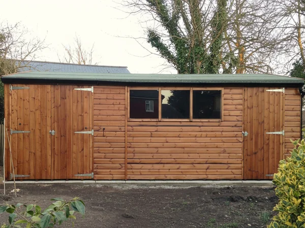 Useful when you want access from two sides, or a separate entrance for storage versus workspace. Each door includes zinc coated hinges and coachbolts.
