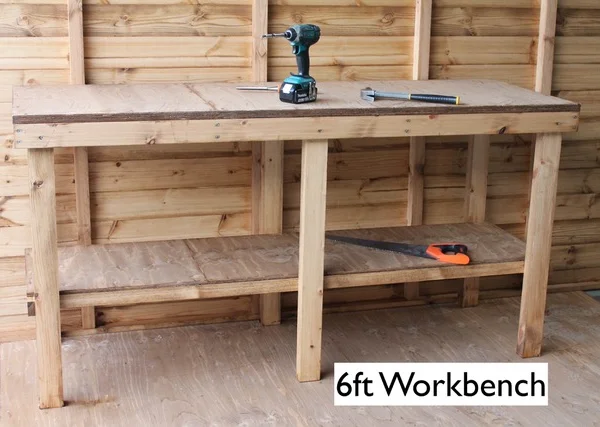 Solid workbench available in multiple sizes: 4ft, 6ft, 8ft, 10ft, or 12ft.